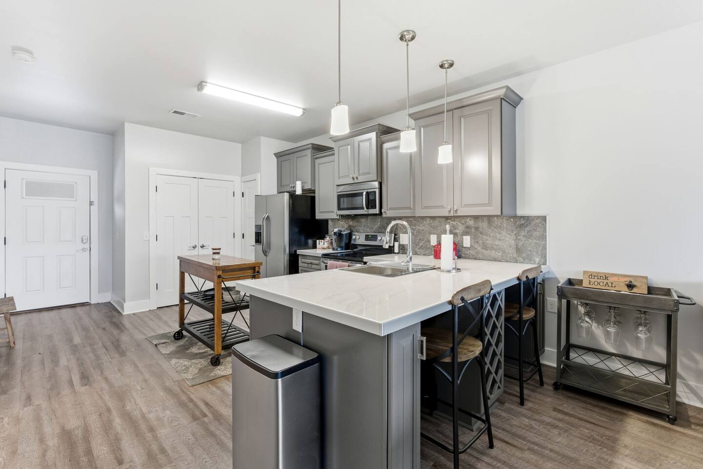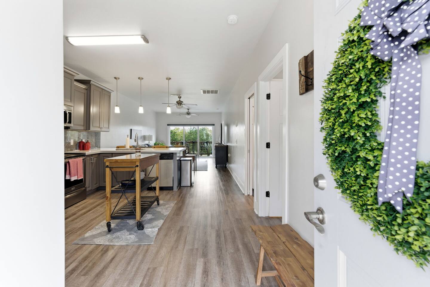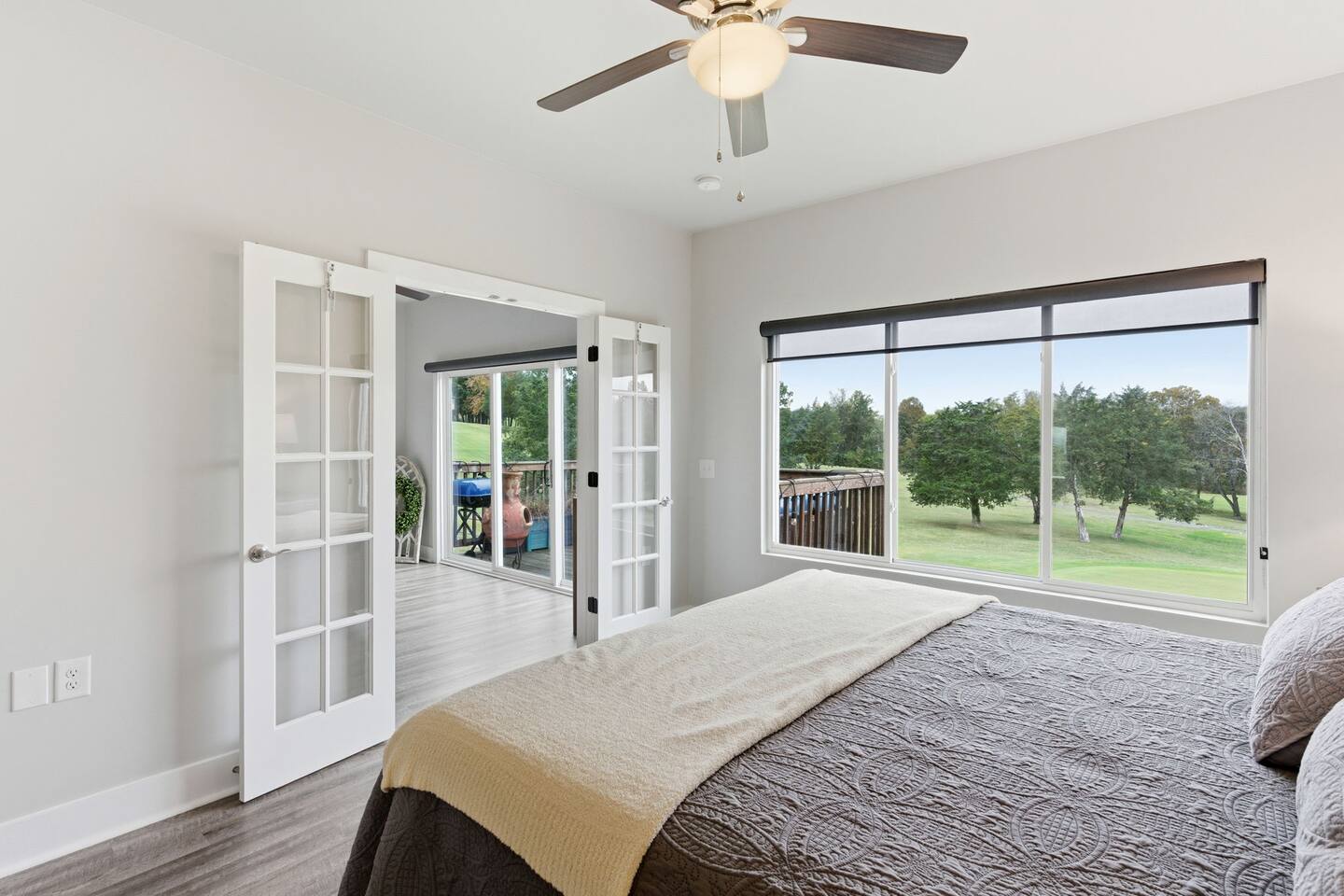 KITCHEN: -Fridge: filtered water + ice maker -Dishwasher -Microwave -Pots and pans, baking dishes, containers for leftovers -Crockpot, blender, toaster -Fully equipped LIVING ROOM -Smart TV -Large sectional -Access to deck overlooking the golf course PRIMARY SUITE: -King size bed - Attached full bath with large shower -Dresser for clothes storage -Large walk-in closet -Black out curtains GUEST BEDROOM: -Queen size bed -Attached full bath with tub -Blackout curtains LAUNDRY: -Washer and dryer in unit OUTDOOR SPACE: -Deck overlooking golf course -Bistro table PARKING: -2 assigned parking spaces directly in front of unit House Rules: Follow basic checkout tasks before check-out (trash out, dishwasher on). Your stay includes a damage waiver that covers accidental damage of up to $2,500. Relax! No need to worry about spilling on a rug or breaking a glass. We've got it covered.